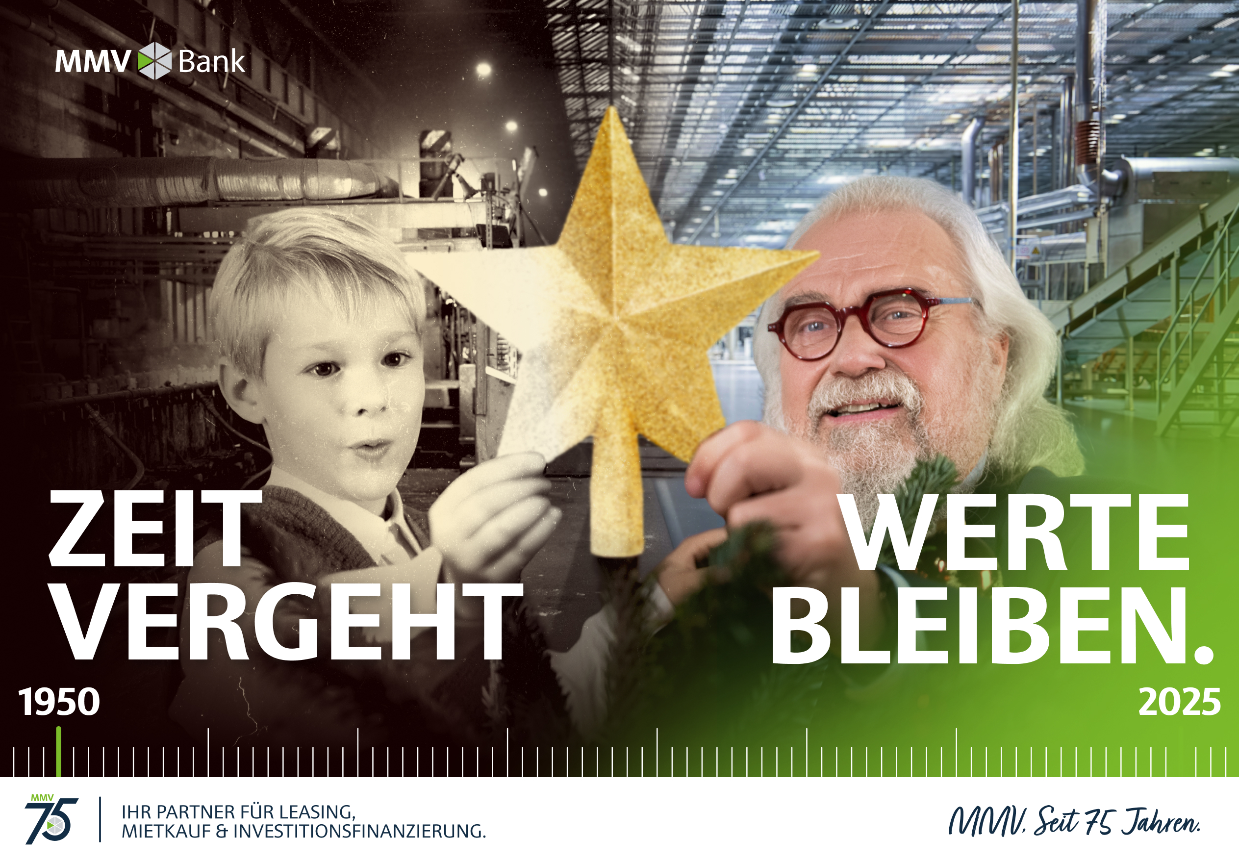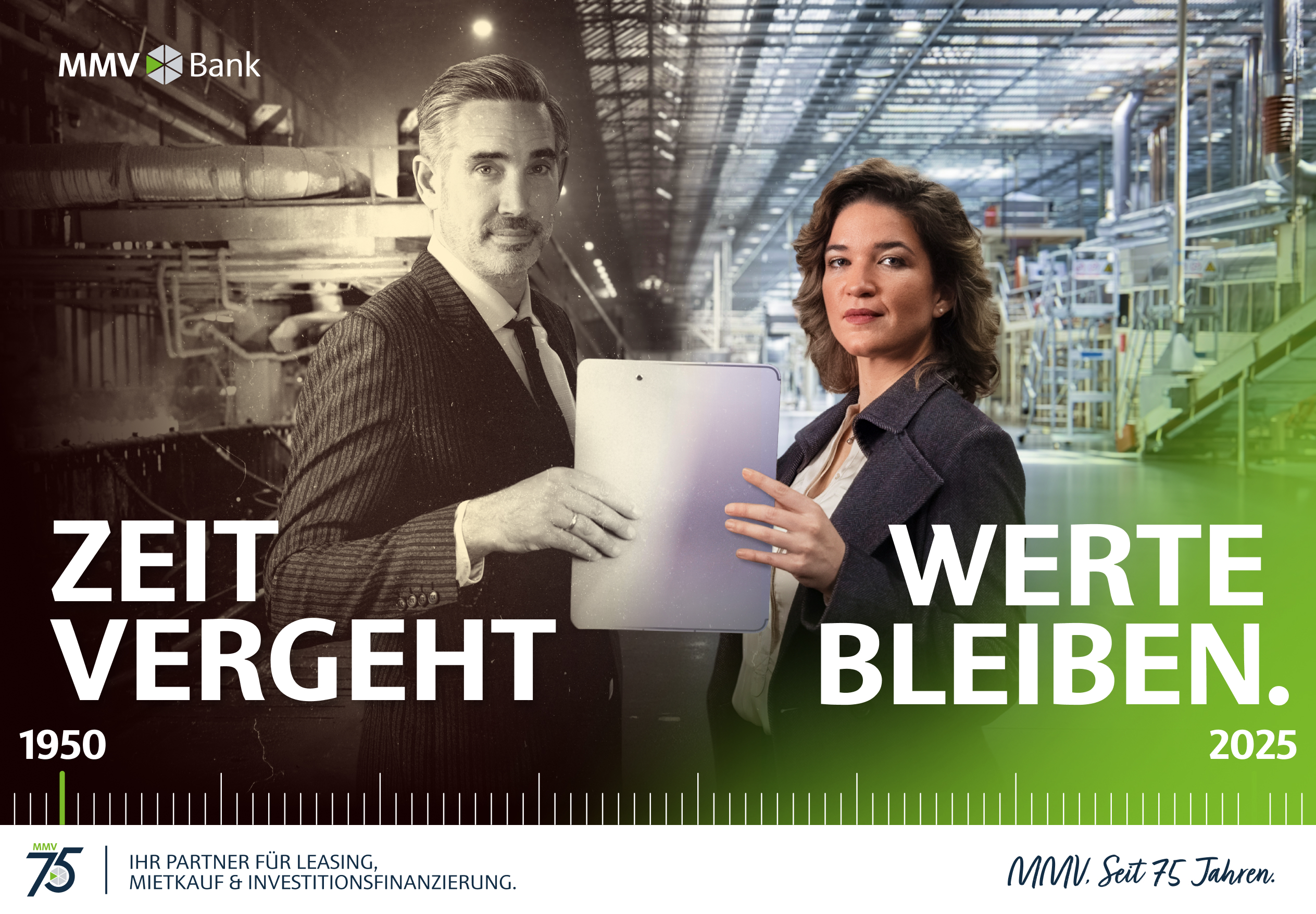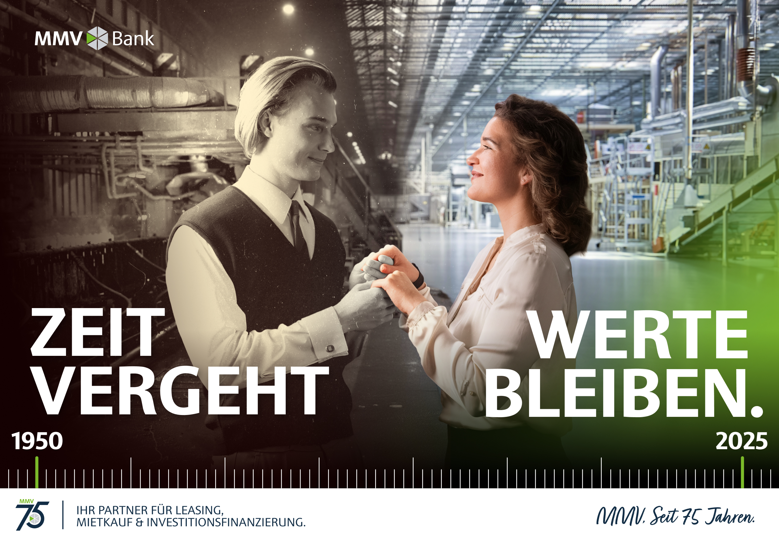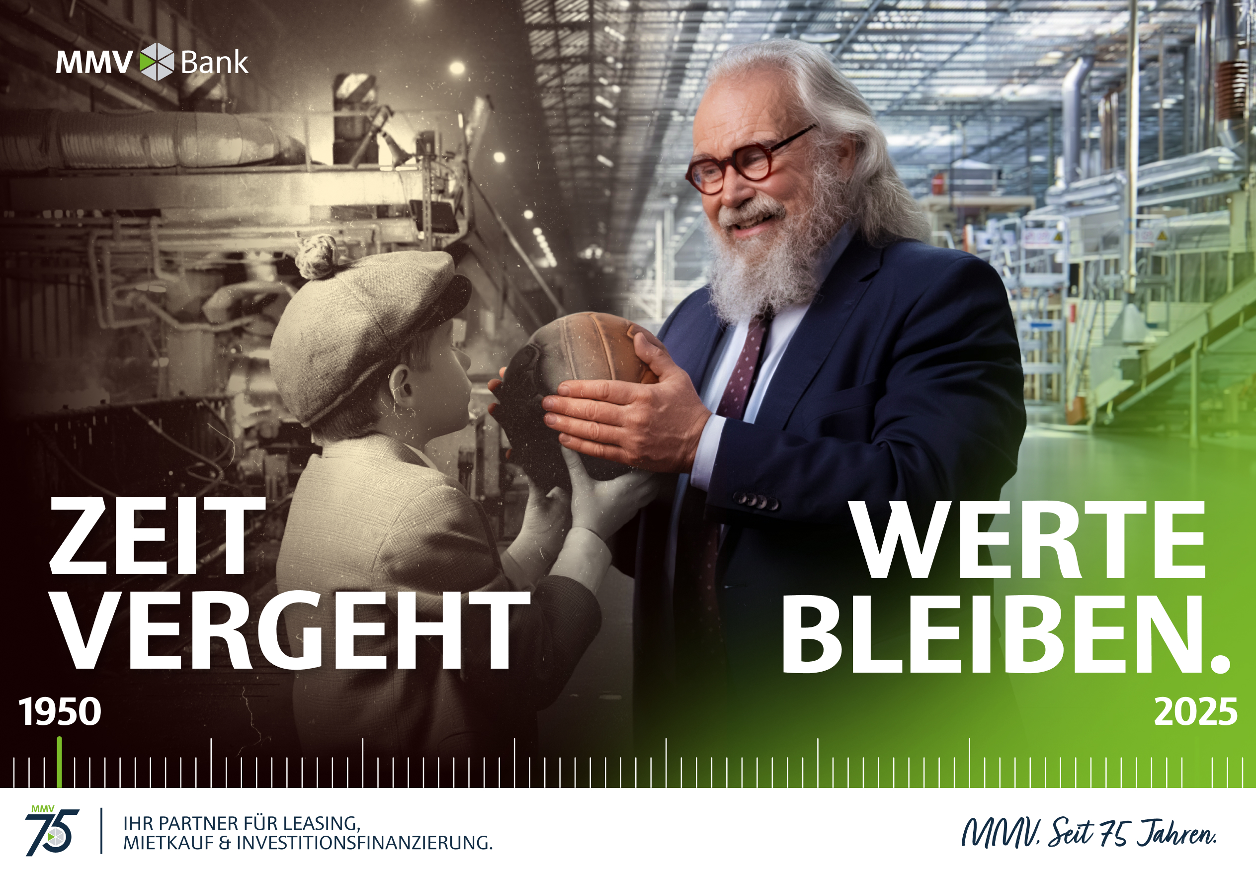Für die MMV Gruppe haben wir einen Werbespot produziert, der beispielhaft erzählt, wie ein Unternehmen über mehrere Generationen hinweg wächst – unterstützt von einem Finanzierungspartner, der von Beginn an an seiner Seite steht. Der Film begleitet einen fiktiven Kunden durch verschiedene Epochen und zeigt, wie aus einem kleinen Betrieb Schritt für Schritt ein starkes Unternehmen werden kann.